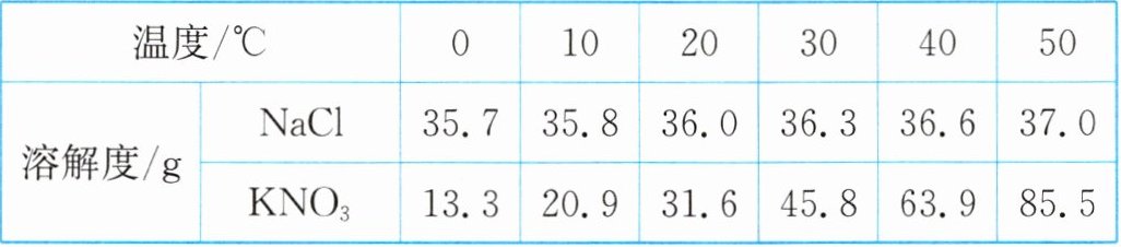 (1) 由表中数据分析可知,KNO₃和NaCl在某一温度时具有相同的溶解度x g,则x的取值范围是