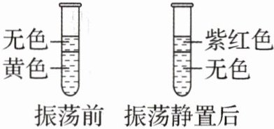 答案:4. B 解析:向 5mL 碘的水溶液(黄色)中加入 2mL 汽油(无色),振荡前,无色的汽油在上方,黄色的碘的水溶液在下方;振荡静置后,上层是紫红色溶液,下层呈无色,上层得到的是碘的汽油溶液,下层是无色的水。由分析可知,汽油的密度比水的小,且不溶于水,故 A 正确。溶液是均一、稳定的混合物,振荡静置后试管中的混合物含有难溶于水的碘和汽油,不是溶液,故 B 错误。振荡静置后,上层是紫红色溶液,是碘的汽油溶液;下层呈无色,是无色的水,说明碘在汽油中的溶解性比在水中强,故 C 正确。碘的汽油溶液显紫红色,碘的水溶液显黄色,说明碘在不同溶剂中形成的溶液颜色可能不同,故 D 正确。
