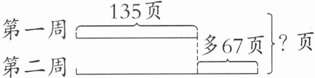 【提示】第一周看的页数$+67=$第二周看的页数,第二周看的页数+第一周看的页数=两周看的总页数。