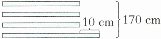【提示】四张纸条总长 170 厘米,去掉最长的纸条多出的 10 厘米,四张纸条同样长,可以用除法求出每张短纸条的长度是 $ (170 - 10) ÷ 4 = 40 $(厘米),因此最长的纸条长度是 $ 40 + 10 = 50 $(厘米)。