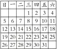[提示]5月4日是星期六,5月1日是星期三,5月有31天,据此填写日期。
