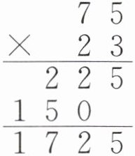答案:2. (1)C 【提示】75×23 的竖式计算是先用 23 个位上的 3 乘 75,再用 23 十位上的 2 也就是 20 乘 75,再将得数相加,因此就是 75×3+75×20。