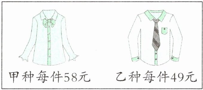 答案:2. 乙 1960 【提示】58≈60,60×40=2400(元),49≈50,50×40=2000(元),因为 49<50,49×40<2000,所以买的是乙种衬衫;49×40=1960(元),实际用了 1960 元。