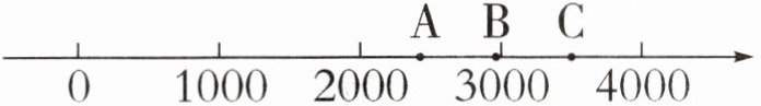 答案:4. B 【提示】把 48 看作 50,62 看作 60,$ 50 × 60 = 3000 $,3000 在直线上接近点 B 的位置,因此 $ 48 × 62 $ 的结果最接近点 B。