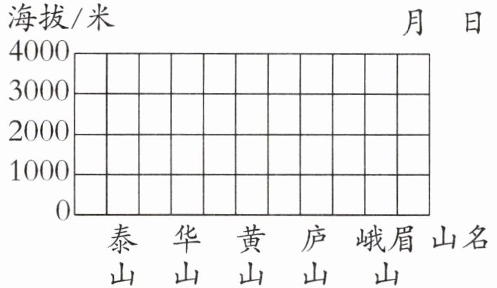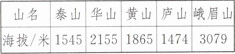 4. 我国五座名山主峰的海拔高度如下表。(表中黄山主峰取最高峰莲花峰的海拔高度,海拔高度均取整数)