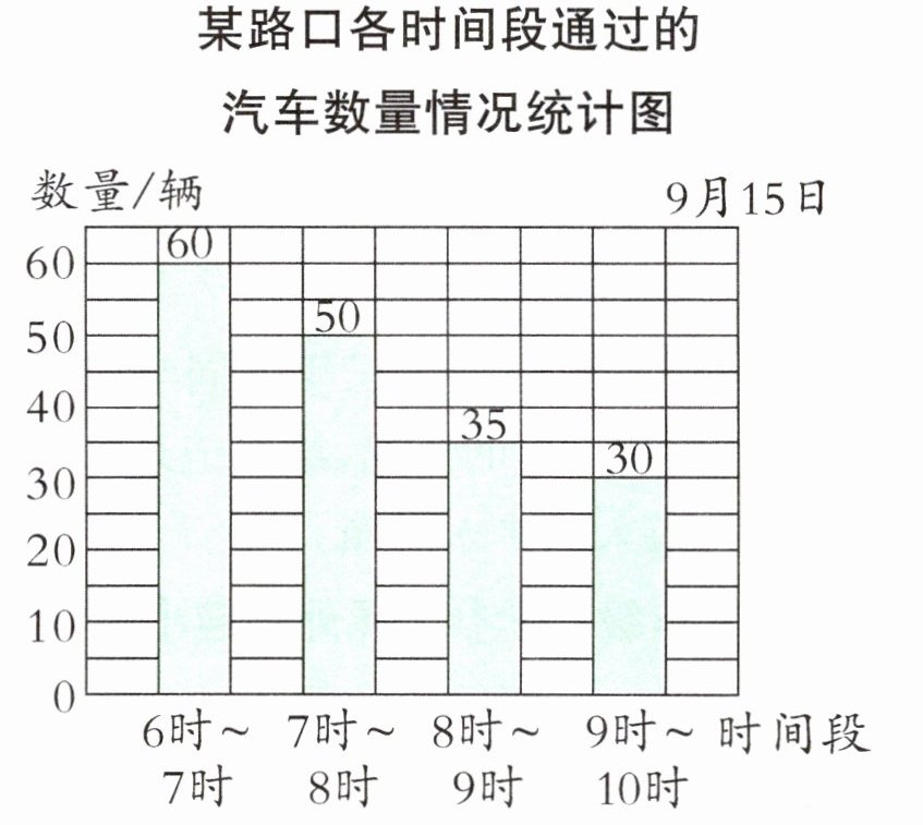 答案:5. 汽车的数量随着时间的变化越来越少,6时~7时、9时~10时这两个时间段汽车数量差距最大。 【提示】观察统计图可知,6时~7时、9时~10时这两个时间段汽车数量差距最大。