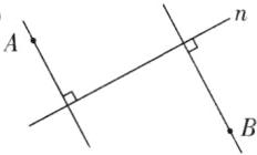 [提示]分别过点A、点B画直线n的垂线,并标上垂直符号。