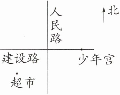 【提示】(1)要画健康路,也就是画一条经过超市,并与建设路所在的直线平行的直线。(2)要画园林路,也就是画一条经过少年宫,并与建设路所在直线互相垂直的直线。
