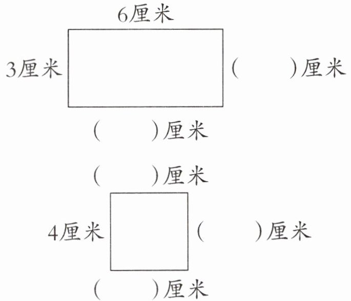 【提示】利用长方形对边相等、正方形四条边都相等的特点来确定图形各边的长度。