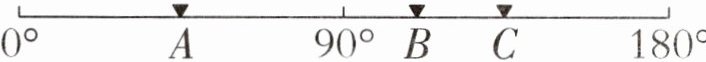 )°。方方在数线图上标出了∠1的度数所在的大致位置,符合该位置的是点(