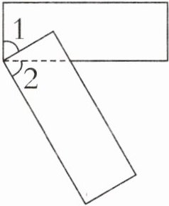 [提示]因为$∠1$左边的角、$∠1$和$∠2$组成了一个平角,所以$∠1$左边的角$+∠1+∠2=180^{\circ }$,由于是折叠起来的,$∠1$与它左边的角相等,$2∠1=180^{\circ }-∠2$,$∠1=(180^{\circ }-30^{\circ })÷2=75^{\circ }$。