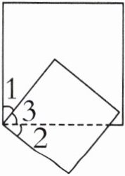 【提示】根据正方形的四个角都是直角可知,$∠ 1+∠ 3=90^{\circ }$,$∠ 3+∠ 2=90^{\circ }$,据此解答。