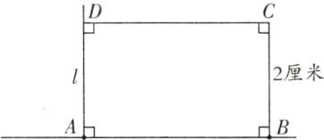 5. (南通通州区·几何直观)过直线 AB 上的点 A 画直线 AB 的垂线 l;再以线段 AB 为长方形的长,画宽是 2 厘米的长方形 ABCD。