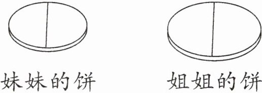 4. 新考法 评价说明 妹妹说:“姐姐吃了她那个饼的$\frac{1}{2}$,我吃了我这个饼的$\frac{1}{2}$,我们都吃了$\frac{1}{2}$,吃得一样多。”妹妹说得对吗?请说明理由。