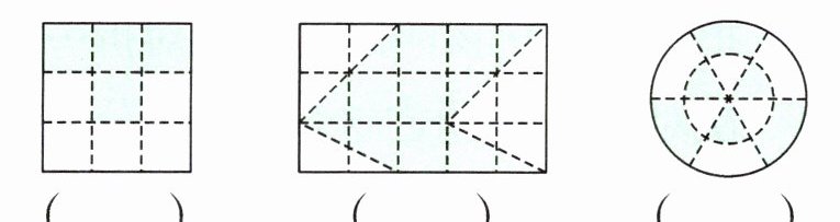 [提示]通过数出图形被平均分成的份数(总份数)以及涂色部分的份数,进而得出它们分别占总图形的几分之几。