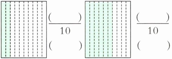 【提示】把一个长方形平均分成 10 份,其中的 2 份用$\frac{2}{10}$表示,可以写成小数 0.2;其中的 6 份用$\frac{6}{10}$表示,可以写成小数 0.6。