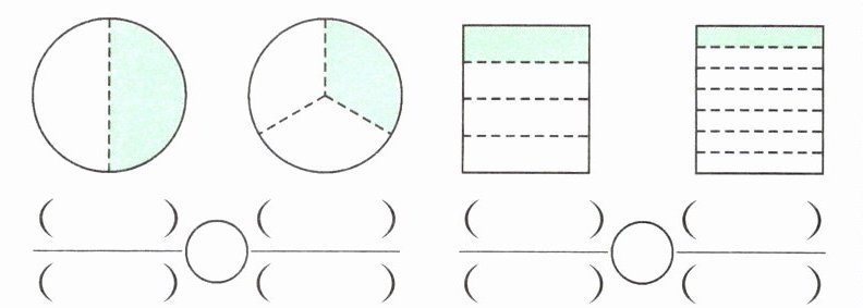 【提示】同样大小的物体或图形,平均分成的份数越多,每份就越小。