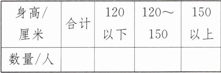 4. 实验班原创 数据意识 按规定,儿童身高在 120 厘米以下乘火车免票,120~150 厘米之间享受半价票,150 厘米以上应买全价票。某小学足球队要乘坐火车去外地比赛,下表是足球队成员的身高情况。(单位:cm)