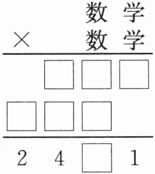 [提示]积的个位上的数是1,说明“学”ד学”的积的个位上的数是1,“学”可能是1或9,1不符合题意,因此“学”代表9;积的结果是2400多,根据估算可知“数”代表4,也可以将数字一个个代入计算。