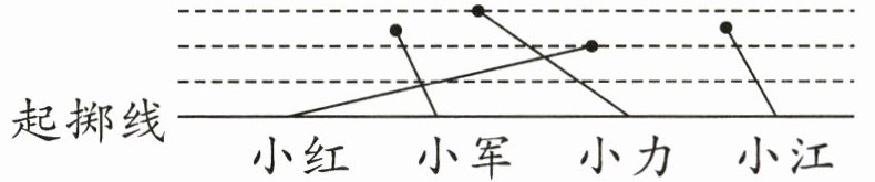 4. 沙包投掷练习时,同学们站在起掷线投掷,沙包落地点到起掷线的距离为同学们的成绩。下面是四名同学投掷沙包情况的示意图,(