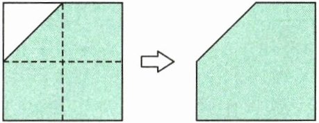 8. 如下图,把一张正方形纸对折、再对折,打开后剪成一个五边形,五边形中有(