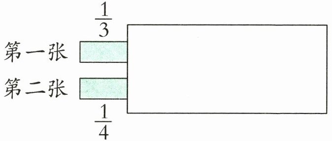 4. 如右图,两张纸条后面部分被遮住了,露出同样长的部分。第一张露出总长度的$\frac{1}{3},$第二张露出总长度的$\frac{1}{4},$原来两张纸条的长度相比,(
