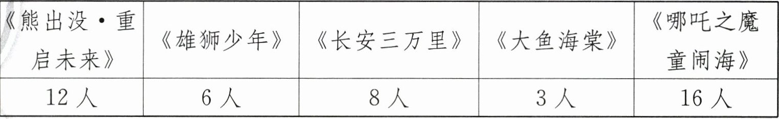 4. 王老师对全班同学进行“你最喜欢哪一部国产动画电影”的调查(每人只选一部),并将收集到的数据汇总成下表,下面说法中正确的是(
