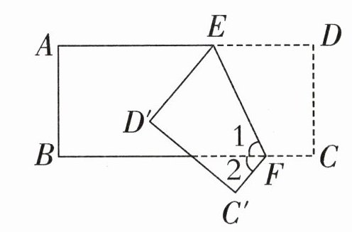 如右下图,把一张长方形纸沿EF折叠后,点D、C分别落在点D'、C'的位置,已知∠1=65°,求∠2的度数。