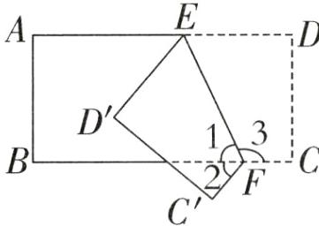 【提示】把一张长方形纸沿 EF 折叠后,∠3=∠1+∠2。因为∠1+∠3=180°,∠1=65°,所以∠3=180°-∠1=180°-65°=115°,又因为∠3=∠1+∠2,所以∠2=∠3-∠1=115°-65°=50°。