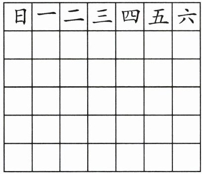 2025年的儿童节是星期日,请完成2025年6月的月历表,并填空。