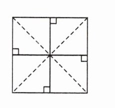 在下面的正方形中画一个点,使这个点到每条边的距离都相等。先想一想应该怎样画,再试着画一画。