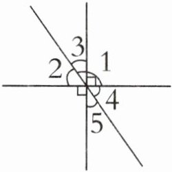 4. 如右下图,已知 $∠ 1 = 125^{\circ}$,分别求出 $∠ 2$、$∠ 3$、$∠ 4$ 和 $∠ 5$ 的度数。