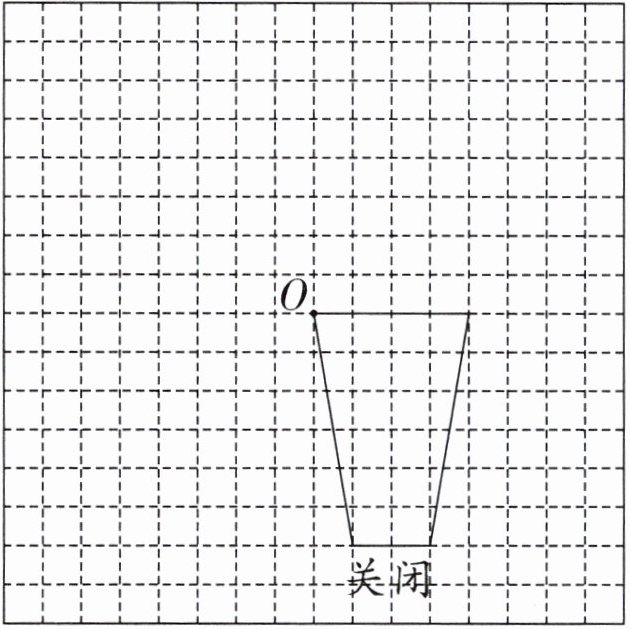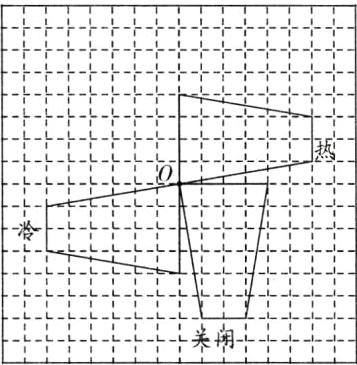 4. 太阳能是一种可再生清洁能源,某太阳能热水器的开关近似一个四边形(如下图)。此时开关是关闭状态,若将开关绕点 $ O $ 逆时针旋转 $ 90^{\circ} $,则开关打开,水温将调到最高。若将开关绕点 $ O $ 顺时针旋转 $ 90^{\circ} $,则开关打开,只出冷水且冷水开到最大。请你画出水温调到最高和冷水开到最大时开关的位置,并标出“热”和“冷”。