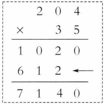 (1)一套衣服 204 元,买 35 套这样的衣服一共需要多少元?下图竖式中箭头所指部分表示(