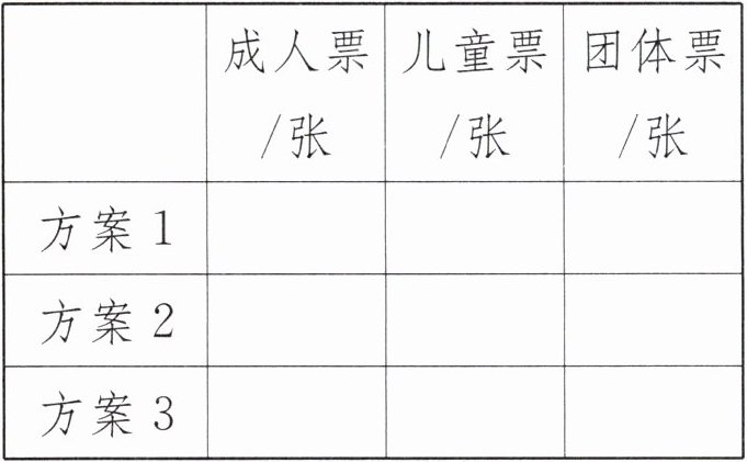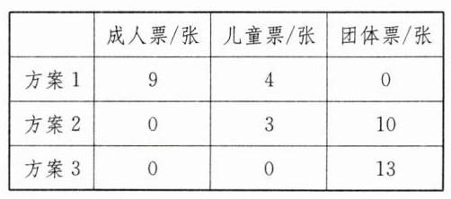 (2)最省钱的方案是买 3 张儿童票和 10 张团体票。
