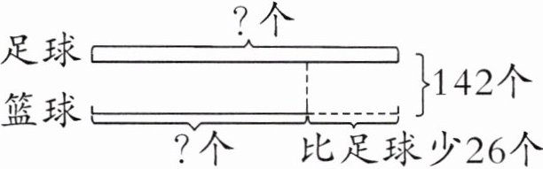 足球:(142 + 26)÷2 = 84(个)