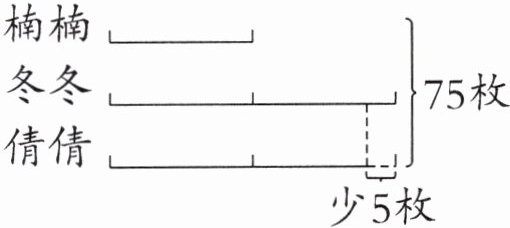答案:3. B 【提示】①观察线段图可以发现,冬冬的印章枚数是楠楠的2倍,说法正确。②三人的总印章枚数加5枚是楠楠印章枚数的5倍,说法正确。③倩倩的印章枚数比楠楠印章枚数的2倍少5枚,说法错误。