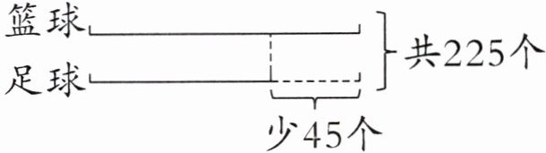 答案:1. B 【提示】由线段图可知,篮球和足球一共有 225 个,其中足球比篮球少 45 个,225 + 45 表示的是篮球个数的 2 倍。