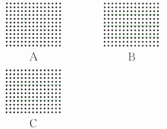 2. 新考法 算理探究 在计算$12×15$时,小雨使用的方法是$3×(4×15)$。下面的点子图中,能体现这种方法的是(