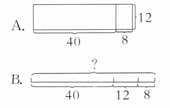 答案:3. B [提示]选项B用算式40 + 12 + 8表示。