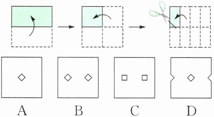 每次对折都是沿对称轴折叠,要明确每次对折后纸张的对称情况。
