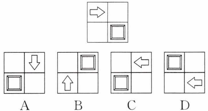 答案:3. C 【提示】观察原图形中箭头、方框等元素,看各选项图形能否通过原图形旋转不同角度得到。