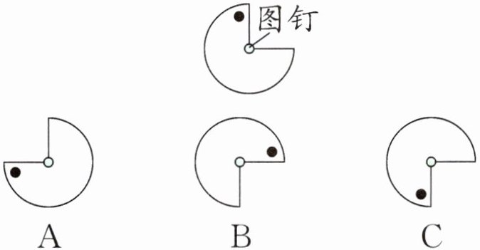 答案:2. B 【提示】本题考查图形的旋转,旋转要关注旋转中心(图钉处)、旋转方向(顺时针)、旋转角度(90°)。