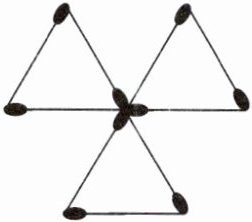 5. 实验班原创 几何直观 下图是用 $ 9 $ 根火柴棒摆成的 $ 3 $ 个等边三角形,现在只移动其中的 $ 3 $ 根火柴棒,使 $ 3 $ 个等边三角形变成 $ 5 $ 个。你能办到吗?请画出移动后的示意图。