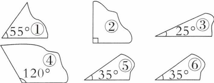 1. 两个35°(⑤⑥)需第三个角110°,无此角;