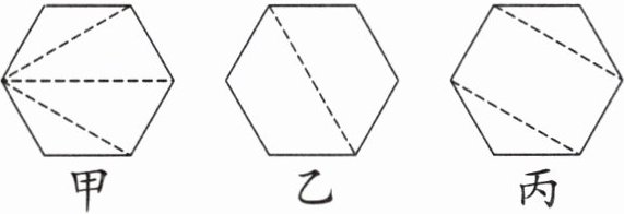 【提示】$180^{\circ} × 6$表示小亮把六边形分成6个三角形,通过分一分发现,中间的角不是六边形的内角,它们组成了一个周角,要减去才行。
