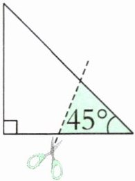 2. 如右图,沿虚线剪去一张等腰直角三角形纸片的涂色部分。剩下图形的内角和是(