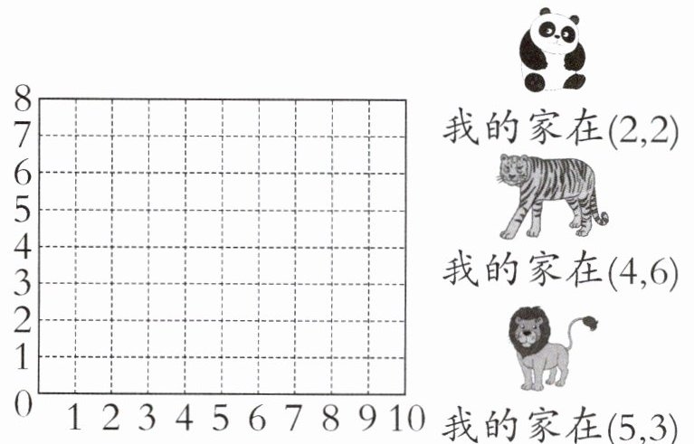 下面是动物园地理位置分布图。根据以下信息,在图上标出小动物们家的位置。淘淘现在的位置是$(1,1)$,他要参观图上的所有动物,怎样走参观的路程最短?(只能沿水平或竖直方向走)
