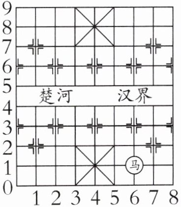 “马”要走到(7,2)的位置,可以先走到(8,0),再走到(7,2),方法不唯一。