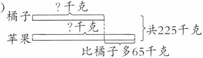 答案:1. (1) 橘子:$(225-65)÷2=80$(千克)